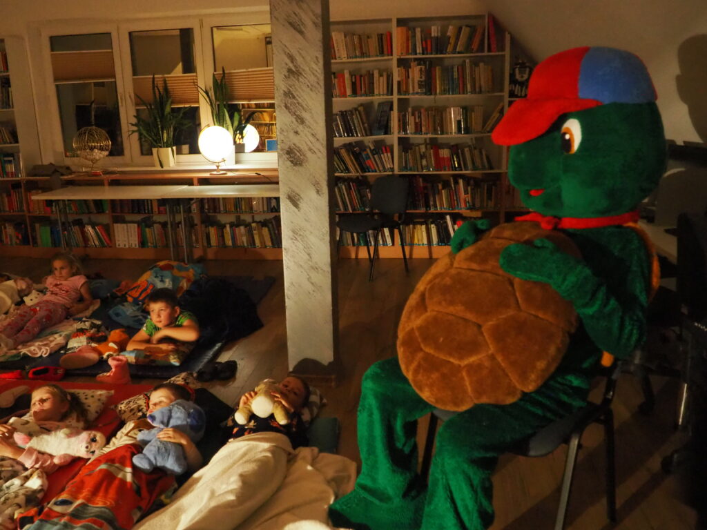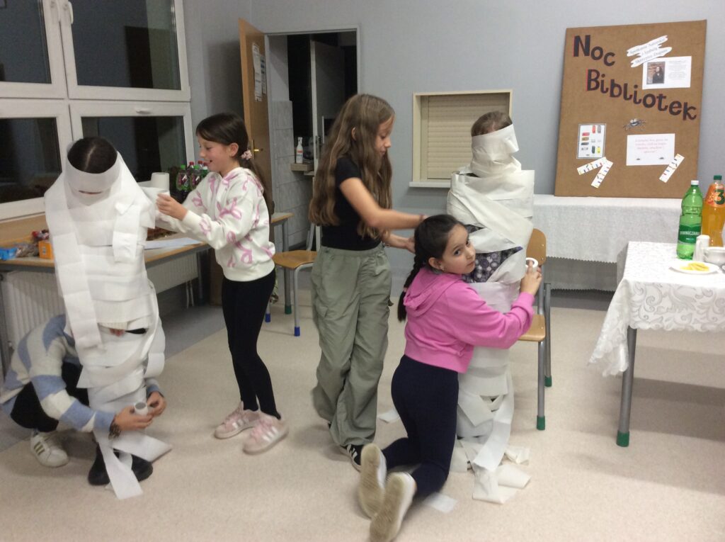 Podczas Nocy Bibliotek nie zabrakło wesołych gier i zabaw, wspólnego pieczenia ciast i przygotowywania kanapek, a także zajęć plastycznych, podczas których malowane były postacie z bajek. Wszyscy uczestnicy spędzili ten wieczór w radosnej, twórczej atmosferze, łącząc naukę z dobrą zabawą.