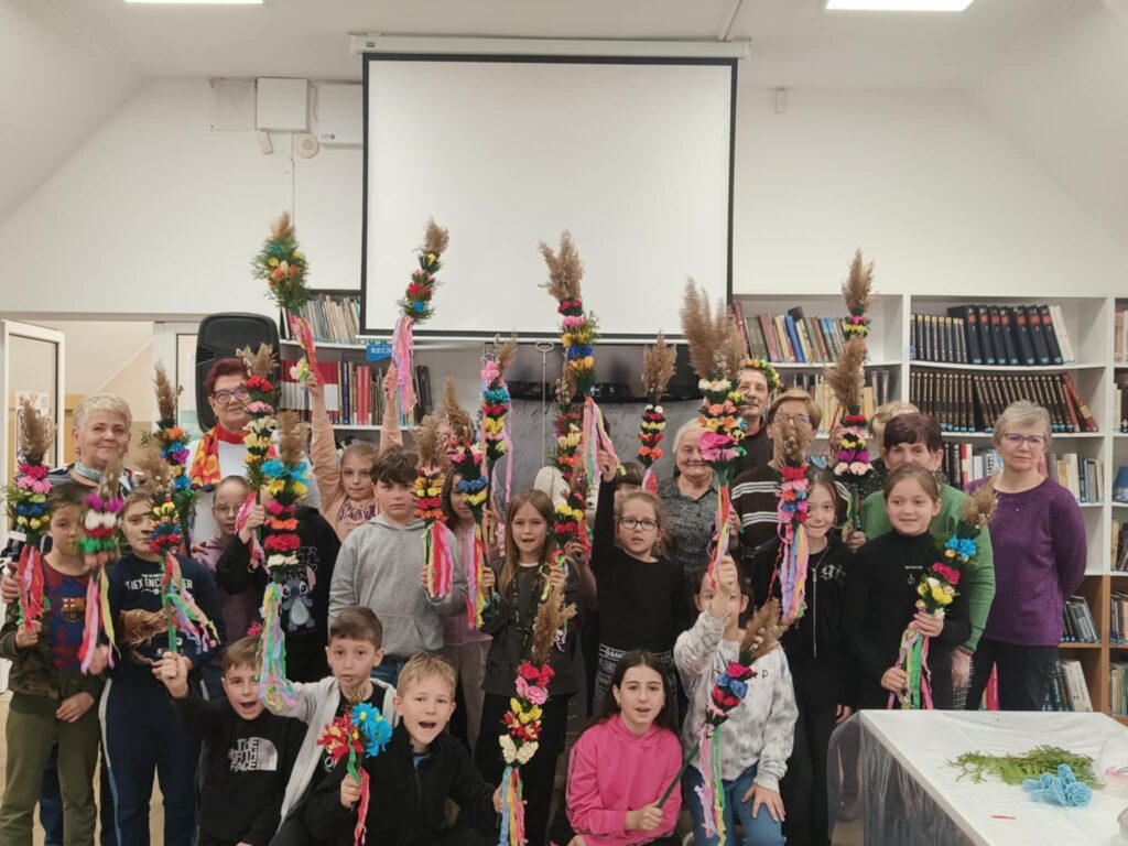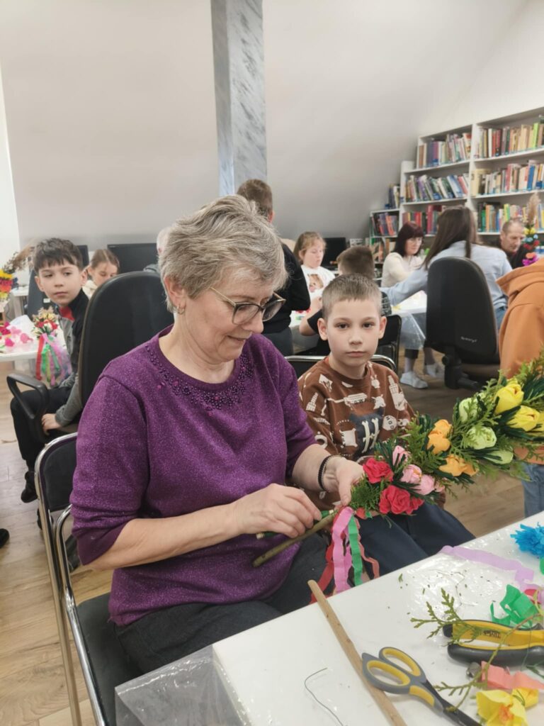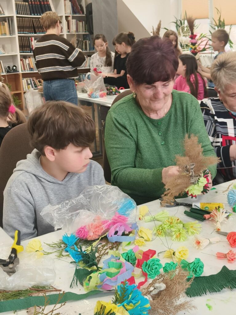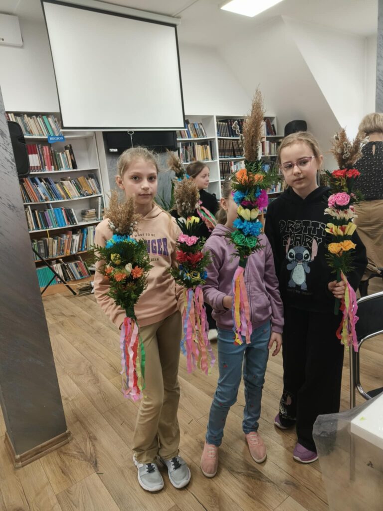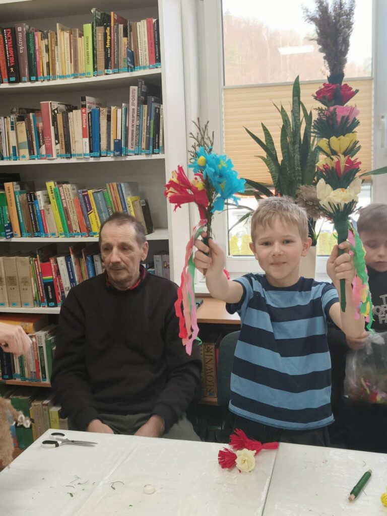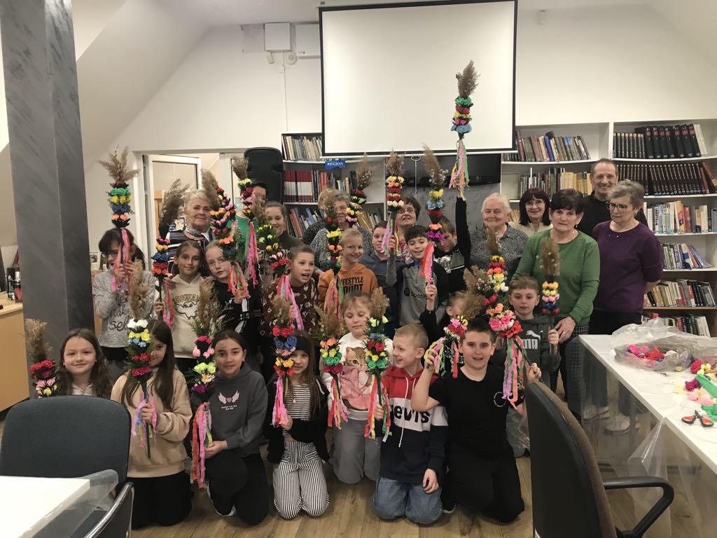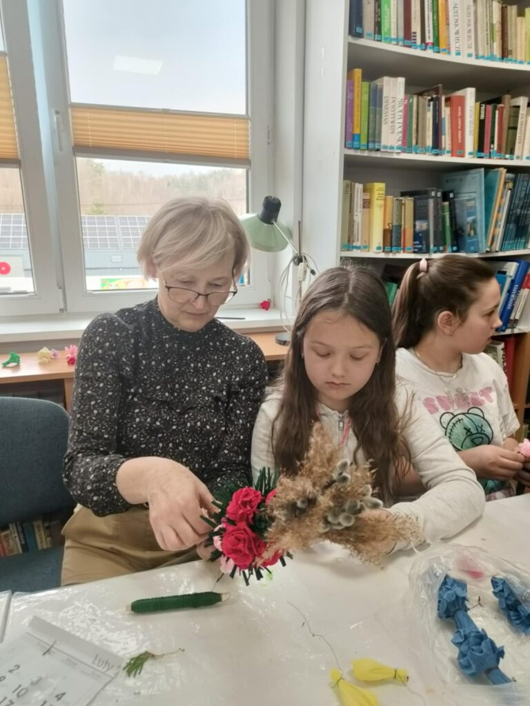 We wtorek, 24 marca 2026 roku, w Gminnej Bibliotece Publicznej w Kamionce Wielkiej odbyły się międzypokoleniowe warsztaty tworzenia palm wielkanocnych.