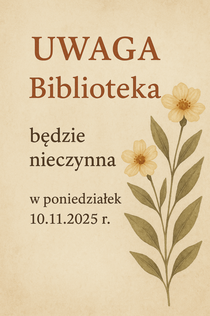 Pragniemy poinformować, że Gminna Biblioteka Publiczna w Kamionce Wielkiej oraz filie biblioteczne w Kamionce Wielkiej i w Mystkowie będą nieczynne w poniedziałek 10 listopada 2025 roku.